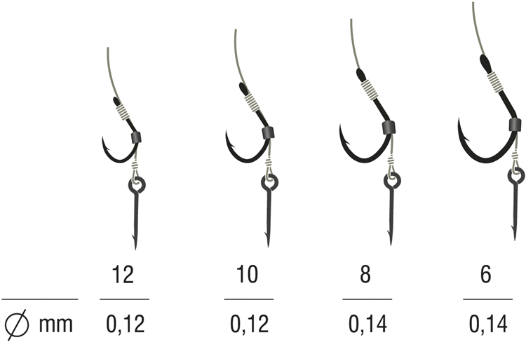 PRZYPONY Z PLECIONKI. Oprócz tradycyjnej żyłki, materiałem na przypony, który ma liczną grupę swoich zwolenników jest plecionka. Teraz seria naszych przyponów do Method Feeder została rozszerzona o modele wykonane na specjalnych plecionkach o małych średnicach. Po tą wersję przyponów warto sięgnąć ze względu na ich miękkość i charakterystyczną dla plecionki dużą wytrzymałość. Z tych oczywistych zalet linki możemy teraz skorzystać stosując nasze nowe przypony, które w zależności od wersji zakończone są pierścieniem, fast-stopem lub bagnetem z nierdzewnego drutu. Przypony wykonaliśmy w oparciu o wyselekcjonowane rodzaje haczyków Kamatsu co pozwoli na optymalny ich dobór w zależności od stosowanej przynęty i gatunków łowionych ryb.