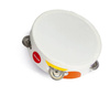 Wymiary: metalowy ksylofon 25 x 12 x 4.5 cm, flet 3 x 31 cm, tamburyn 15 x 15 x 4.5 cm, kastaniety 5.7 cm.