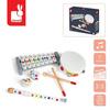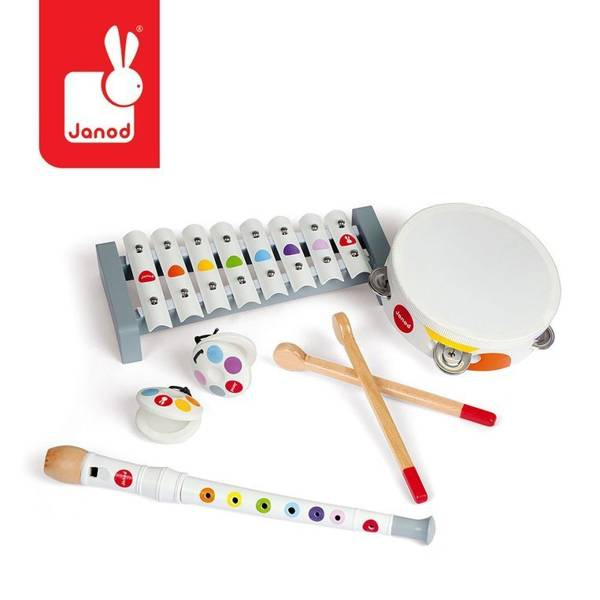 Zestaw zabawek muzycznych został zaprojektowany we Francji. Zapakowany jest w estetyczne, kartonowe pudełko, idealne na prezent.