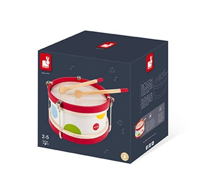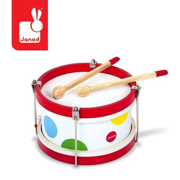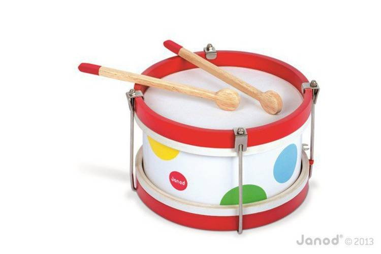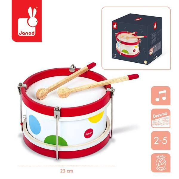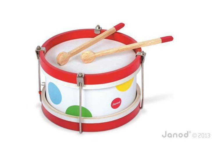 Drewniany bębenek Confetti francuskiej marki Janod idealnie sprawdzi się jako pierwsza zabawka muzyczna Twojego dziecka, która pomoże mu odkryć świat muzyki i dźwięków. Bębenek pomoże w rozwoju koordynacji ruchowej, uwrażliwi dziecko na dźwięki oraz rozbudzi w nim poczucie rytmu. Idealny na prezent dla dwulatka.