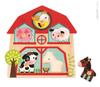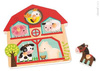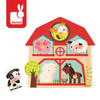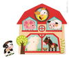 Drewniane puzzle muzyczne Mieszkańcy Farmy francuskiej marki JANOD to wspaniała pierwsza układanka dla malucha. Zestaw składa się z 6 elementów: 5 drewnianych zwierzątek (świnka, owca, ptaszek, krówka i konik) oraz drewnianej planszy-zagrody z wgłębieniami o kształtach tych właśnie zwierząt. Zadaniem dziecka jest dopasowanie zwierząt w odpowiednie miejsce na planszy. Kiedy tak się stanie, specjalny czujnik we wgłębieniu sprawi, że zabawka wyda dźwięk, charakterystyczny dla danego stworzenia. Specjalne uchwyty przy każdym z elementów ułatwiają małym rączkom zabawę. Taka układanka to idealny wstęp do prawdziwych puzzli, a poznawanie odgłosów zwierząt to doskonałe narzędzie empiryczne, które rozwija dziecięcy zmysł słuchu.