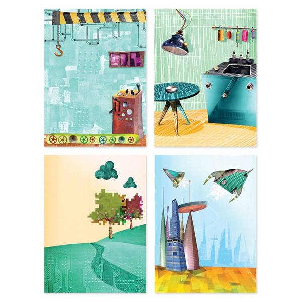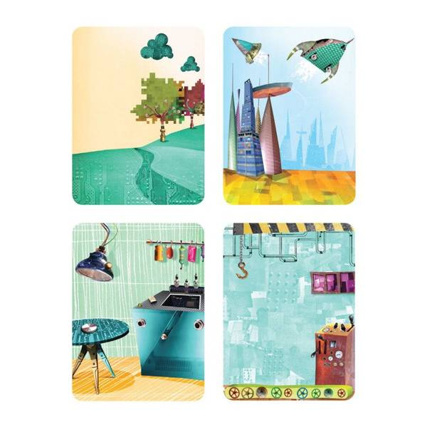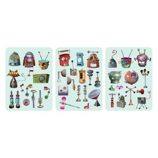 Zestaw magnesów do tworzenia postaci Roboty amerykańskiej marki MUDPUPPY to wyjątkowo kreatywna zabawka dla dzieci od 6 roku życia. Na 2 dwustronnych magnetycznych (cynowych) kartach znajdują się industrialne czy futurystyczne tła. Można na nich umieszczać wybrane magnesy (ponad 40 elementów) – części i akcesoria – tworząc wiele różnych opowieści o robotach. Autorem grafiki jest Pablo Bernasconi, uznany argentyński ilustrator książek dla dzieci i projektant. Zabawka ma poręczny format, sprawdza się w domu i w podróży. Zapakowana jest w estetyczne, metalowe pudełko. Doskonale nadaje się na prezent.