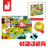 Duży zestaw puzzli sensorycznych francuskiej marki JANOD. Składa się z 20 elementów. Ułożony z nich obrazek przedstawia życie na farmie krainie. Jej mieszkańców dziecko może poznać także sensorycznie – sierść czy skóra siedmiu zwierząt wykonane zostały z teksturowanych materiałów. Dotykanie różnorodnych tekstur imituje prawdziwe wrażenia empiryczne i rozwija dziecięcy zmysł dotyku. Wzbudza też dodatkowe zainteresowanie układanką. Puzzle mają spore rozmiary, a obrazek po ułożeniu ma 65 na 50 cm. Puzzle zostały wykonane z trwałego kartonu, a ich kształty ułatwiają dziecku łączenie elementów.