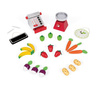 - 18 sztuk drewnianych warzyw i owoców (3 marchewki, 3 ziemniaki, 3 rzodkiewki, 3 jabłka, 3 banany i 3 truskawki),