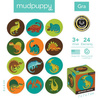 Gra Mini Memory Dinozaury amerykańskiej marki MUDPUPPY składa się 12 par okrągłych kart, które należy skompletować. Parę tworzą dwie identyczne ilustracje. Karty mają przyjemne dla oka kolory i przedstawiają różne gatunki dinozaurów. Autorem projektu jest Michael Robertson, znany ilustrator książek dla dzieci. Karty zostały wykonane z solidnego kartonu, pochodzącego z recyklingu. Gra memory to wspaniała zabawa zarówno dla dzieci, jak i dorosłych. Ćwiczy pamięć, uczy cierpliwości i skupienia.