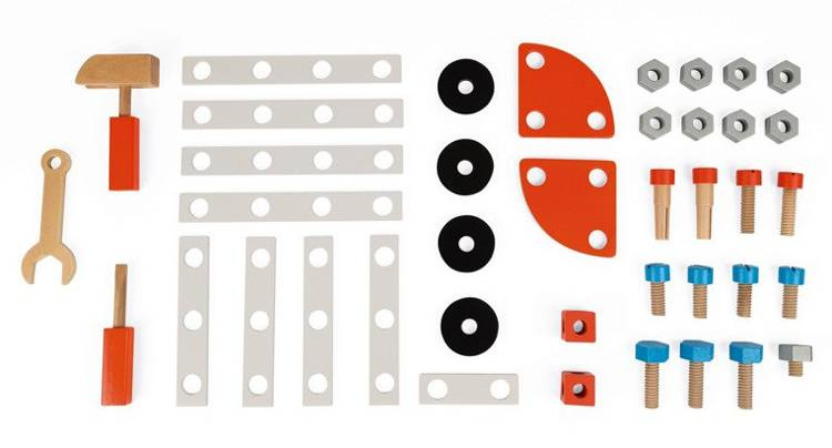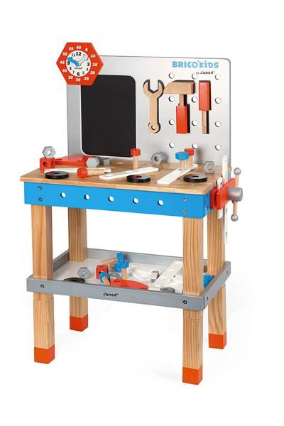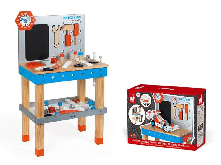 Nową serię akcesoriów do zabawy w warsztat Brico'Kids marki JANOD wyróżnia niebanalna kolorystyka – są tu elementy w intensywnych odcieniach pomarańczu i niebieskiego. Akcesoria te odwzorowują wiernie swoje „dorosłe” odpowiedniki, wielkością dostosowane są jednak do dziecięcych rączek. Są bezpieczne i idealnie nadają się do uwielbianej przez dzieci „zabawy w dorosłych”. Zostały starannie wykonane, mają przyjemny, ciekawy design, który rozwija poczucie estetyki, a ponadto rozwijają kreatywność i motorykę małej dłoni. Odtwarzanie sytuacji znanych z obserwacji pozytywnie wpływa również na wszechstronny rozwój dziecka, w tym kontakt z rówieśnikami i rozwiązywanie problemów.