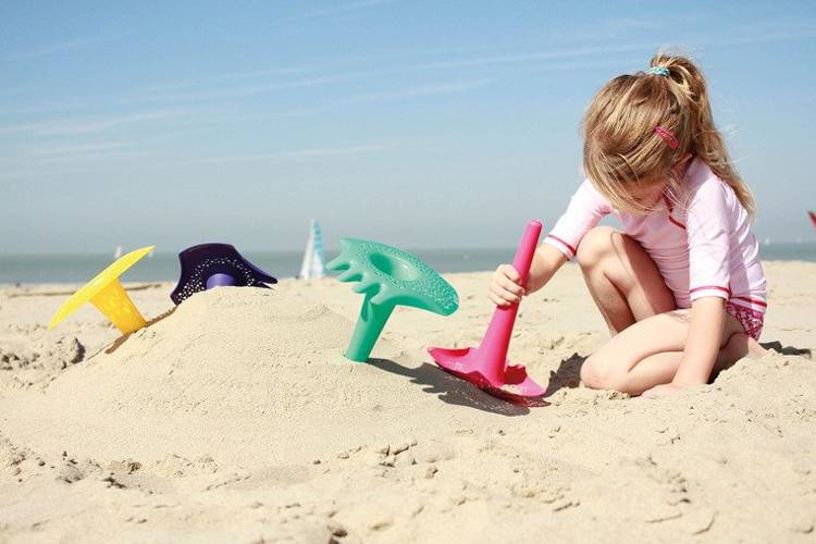 Łopatka wielofunkcyjna Triplet belgijskiej marki Quut przyciąga wzrok niebanalnym designem i oryginalną kolorystyką. Jest poręczna, lekka i łatwa do utrzymania przez dziecko. To prawdziwie wszechstronne narzędzie 4 w 1: może być łopatką, grabkami, sitkiem i lejkiem do wody. Można także przenosić na niej np. muszelki lub wykorzystywać w każdy, dowolny sposób, jaki podpowie dziecku wyobraźnia. Gwarantuje inteligentną aktywność na świeżym powietrzu, i to przez cały rok. Sprawdza się bowiem nie tylko do zabaw w piasku, ale także w wodzie (nawet w wannie), śniegu czy ogrodzie.