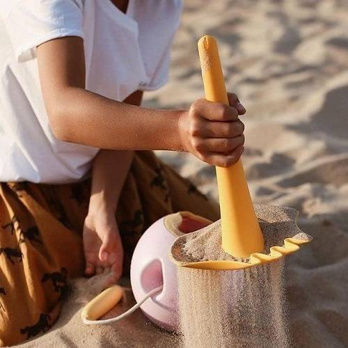 Łopatka wielofunkcyjna Triplet belgijskiej marki Quut przyciąga wzrok niebanalnym designem i oryginalną kolorystyką. Jest poręczna, lekka i łatwa do utrzymania przez dziecko. To prawdziwie wszechstronne narzędzie 4 w 1: może być łopatką, grabkami, sitkiem i lejkiem do wody. Można także przenosić na niej np. muszelki lub wykorzystywać w każdy, dowolny sposób, jaki podpowie dziecku wyobraźnia. Gwarantuje inteligentną aktywność na świeżym powietrzu, i to przez cały rok. Sprawdza się bowiem nie tylko do zabaw w piasku, ale także w wodzie (nawet w wannie), śniegu czy ogrodzie.