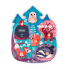 Drewniane puzzle Wesoły Las francuskiej marki JANOD to wspaniała pierwsza układanka dla malucha. Zestaw składa się z 7 elementów: 6 drewnianych zwierzątek – sowy, niedźwiedzia, lisa, wiewiórki, jelonka i borsuka – oraz 1 drewnianej planszy w kształcie gęstego lasu (m.in. z gawrą niedźwiadka i norą borsuka) i z wgłębieniami o kształtach wymienionych zwierząt. Zadaniem dziecka jest dopasowanie stworzeń do odpowiednich miejsc na planszy. Specjalne uchwyty przy każdym z elementów ułatwiają małym rączkom zabawę. Taka układanka to idealny wstęp do prawdziwych puzzli.