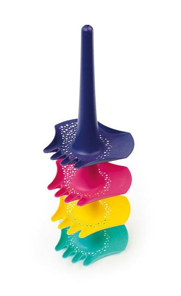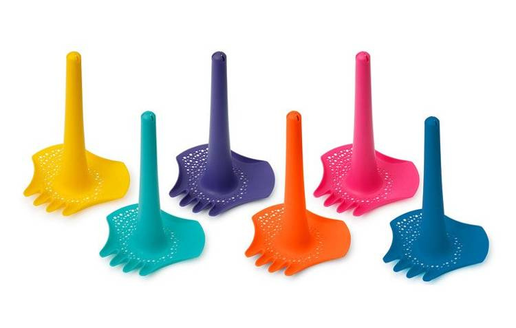 Łopatka wielofunkcyjna Triplet belgijskiej marki Quut przyciąga wzrok niebanalnym designem i oryginalną kolorystyką. Jest poręczna, lekka i łatwa do utrzymania przez dziecko. To prawdziwie wszechstronne narzędzie 4 w 1: może być łopatką, grabkami, sitkiem i lejkiem do wody. Można także przenosić na niej np. muszelki lub wykorzystywać w każdy, dowolny sposób, jaki podpowie dziecku wyobraźnia. Gwarantuje inteligentną aktywność na świeżym powietrzu, i to przez cały rok. Sprawdza się bowiem nie tylko do zabaw w piasku, ale także w wodzie (nawet w wannie), śniegu czy ogrodzie.