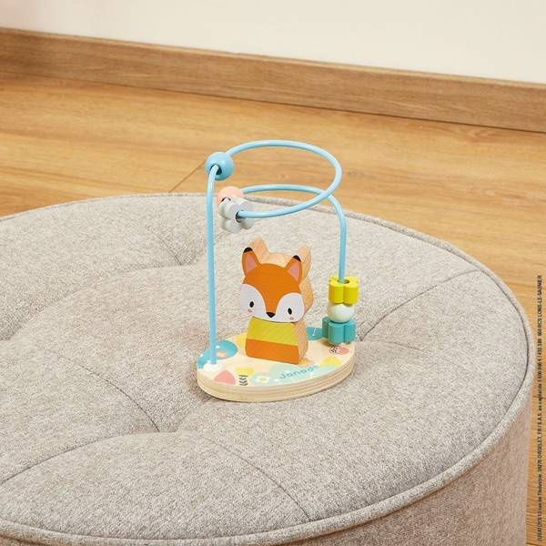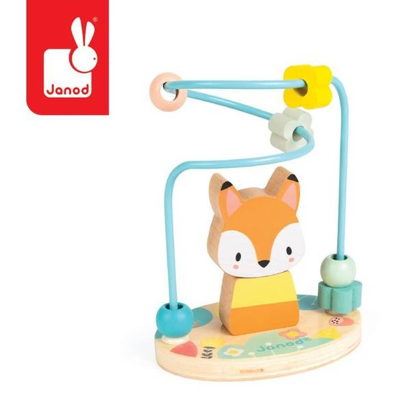 Pętla edukacyjna Lisek francuskiej marki JANOD to idealna zabawka dla dzieci od 1. roku życia. Składa się z pętli z 6 elementami i dwuczęściowej mini-piramidy – liska. Przesuwając klocki po pętli i układając piramidkę, maluch rozwija koordynację ruchową i motorykę, trenuje pamięć, poznaje kształty i kolory, a także uczy się logicznego myślenia. Piękne pastelowe kolory są miłe dla oka i zachęcają dziecko do zabawy. Wszystkie elementy są wygodne do trzymania w małych rączkach. Zabawka umieszczona jest na okrągłej podstawce. Jest w pełni bezpieczna dla dziecka.