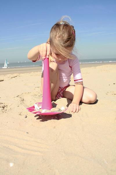 Łopatka wielofunkcyjna Triplet belgijskiej marki Quut przyciąga wzrok niebanalnym designem i oryginalną kolorystyką. Jest poręczna, lekka i łatwa do utrzymania przez dziecko. To prawdziwie wszechstronne narzędzie 4 w 1: może być łopatką, grabkami, sitkiem i lejkiem do wody. Można także przenosić na niej np. muszelki lub wykorzystywać w każdy, dowolny sposób, jaki podpowie dziecku wyobraźnia. Gwarantuje inteligentną aktywność na świeżym powietrzu, i to przez cały rok. Sprawdza się bowiem nie tylko do zabaw w piasku, ale także w wodzie (nawet w wannie), śniegu czy ogrodzie.