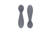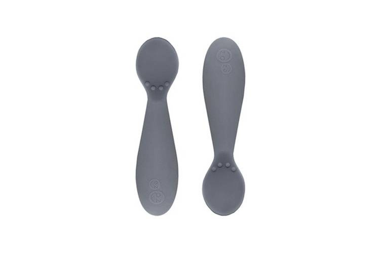 Łyżeczki Tiny Spoons to idealne łyżeczki do nauki samodzielnego jedzenia. Ich wąska główka ma optymalną wielkość i jest całkowicie bezpieczna dla delikatnych dziąseł maluszka, miękki materiał chroni wyrzynające się ząbki, a lekkie wygięcie pomaga w nauce domykania warg. Cztery silikonowe wypustki na krawędzi wewnętrznej, stymulujące sensorycznie usta i dziąsła/ząbki dziecka, zapobiegają dławieniu się. Odpowiednio krótki, dość gruby, zaokrąglony i antypoślizgowy uchwyt łyżeczki został wyprofilowany tak, by była ona łatwa do trzymania w małych rączkach. Dodatkowa wypustka pod spodem uchwytu stabilizuje leżącą łyżeczkę.