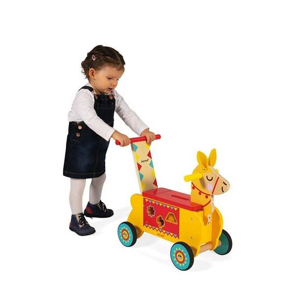 Jeździk i pchacz 2 w 1 z sorterem kształtów Lama, Janod