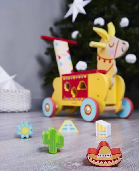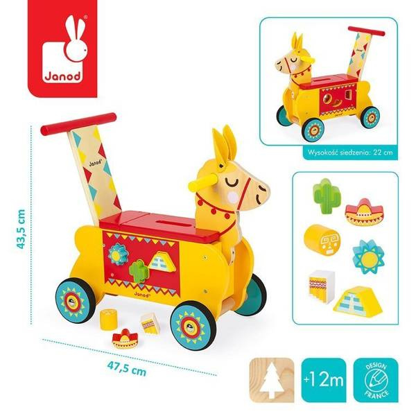 • Jeździk i pchacz 2 w 1 z sorterem kształtów Lama, Janod