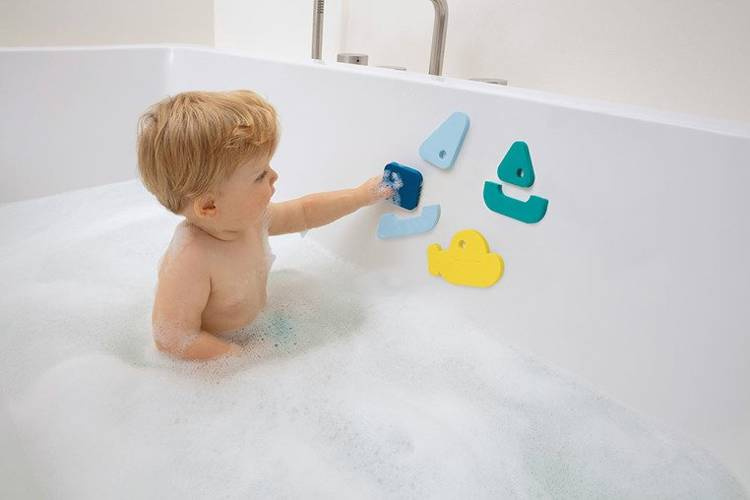 Zestaw puzzli piankowych Łódki z kolekcji Quutopia belgijskiej marki Quut to innowacyjna zabawka do kąpieli dla dzieci już od 10 miesiąca życia. Zadziwia pomysłowością, rozwija kreatywność, przyciąga wzrok designem i oryginalną kolorystyką. Komplet składa się z 8 puzzli: 4 kadłubów i 4 pokładów lub żagli , wykonanych z wyjątkowego materiału, jakim jest pianka EVA, w intensywnych barwach (chabrowy, turkusowy, żółty i niebieski). Kształty puzzli umożliwiają łączenie ich na różne sposoby (można zbudować np. zieloną żaglówkę, niebieski kontenerowiec, żółtą łódź podwodną, lub stworzyć inne unikatowe konstrukcje). Po zamoczeniu, można przyklejać je do powierzchni wanny lub glazury, oraz bawić się w sposób, jaki tylko podpowie dziecku wyobraźnia. Figurki unoszą się na wodzie, są lekkie i szybkoschnące.
