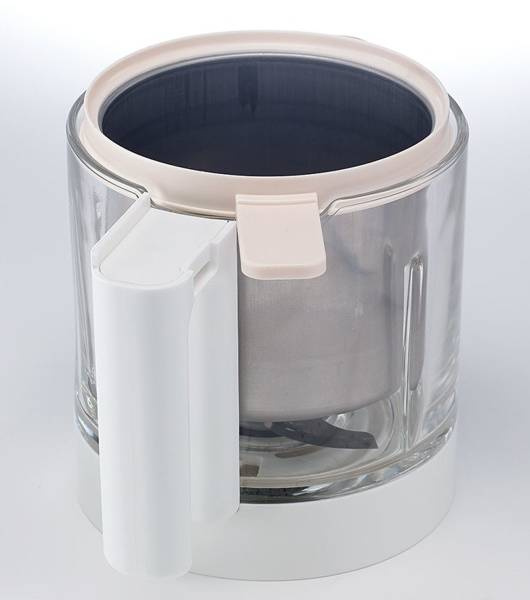 3. Ergonomiczny dzbanek z najwyższej jakości szkła z poręcznym uchwytem, umożliwiającym jednocześnie pełne otwarcie pokrywki jednym prostym ruchem (system „easy clip”) - to wygoda używania i gwarancja bezpiecznego oraz zdrowego podgrzewania lub rozmrażania, higienicznego i bezzapachowego, a także utrzymania przez dłuższy czas finalnej temperatury posiłku. Spora pojemność dzbanka – 1250 ml – pozwala na przygotowanie większej ilości posiłku na raz, np. obiadów na kilka dni z góry.