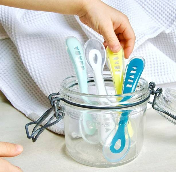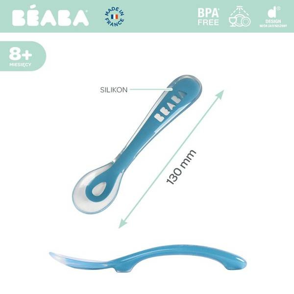 Łyżeczka silikonowa francuskiej marki BEABA, przeznaczona do nauki samodzielnego jedzenia. Uchwyt łyżeczki został wyprofilowany tak, by była ona łatwa do trzymania w małych rączkach, a jej zaokrąglona miękka główka ma idealną wielkość dla dziecięcej buzi i jest w pełni bezpiecznego dla delikatnych dziąseł maluszka. Kształt łyżeczki z dodatkową wypustką pod spodem pozwala odłożyć ją na stole tak, by główka nie dotykała powierzchni, dzięki czemu jej używanie jest bardziej higieniczne.