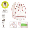 Zestaw dwóch praktycznych, zmywalnych śliniaków niemieckiej marki LASSIG. Duże, transparentne śliniaki z wodoodpornego tworzywa – jeden w jasnoróżową krateczkę z jasnym obszyciem, drugi w bardzo drobne czarne kropeczki, z kolorowym motywem urokliwego ślimaka i innych ogrodniczych detali, np. gałązek oraz z bordowym obszyciem. Miękka taśma i zapięcie na rzep zapewniają komfort użytkowania. Śliniaki przeznaczone są dla dzieci od 6. miesiąca życia. Idealne przy płynnych czy szczególnie brudzących posiłkach. Zarówno przy karmieniu, jak i pierwszych próbach samodzielnego jedzenia. Na dole mają kieszonkę, gdzie mogą się zbierać resztki pokarmu, które nie trafiły do buzi. Dzięki temu masz pewność, że nie zaplamią koszulki czy spodni maluszka.