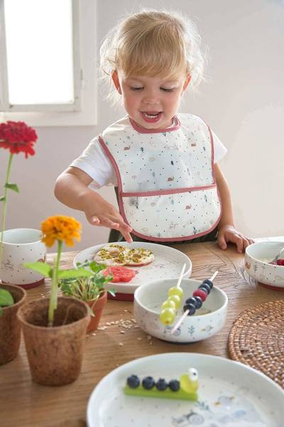 W kolekcji Garden Explorer maluchy odnajdą przedmioty, typowe dla podwórka, ogrodu czy wsi, m.in. urokliwego ślimaczka, słodką pszczółkę, interesujący traktor oraz wiele motywów roślinnych. Ich zadaniem jest pobudzenie dziecięcej ciekawości do odkrywania świata wokół nich, a także sprawienie, by wszystkie codzienne czynności stały się o wiele przyjemniejsze: czy to posiłek, czy popołudniowa drzemka.