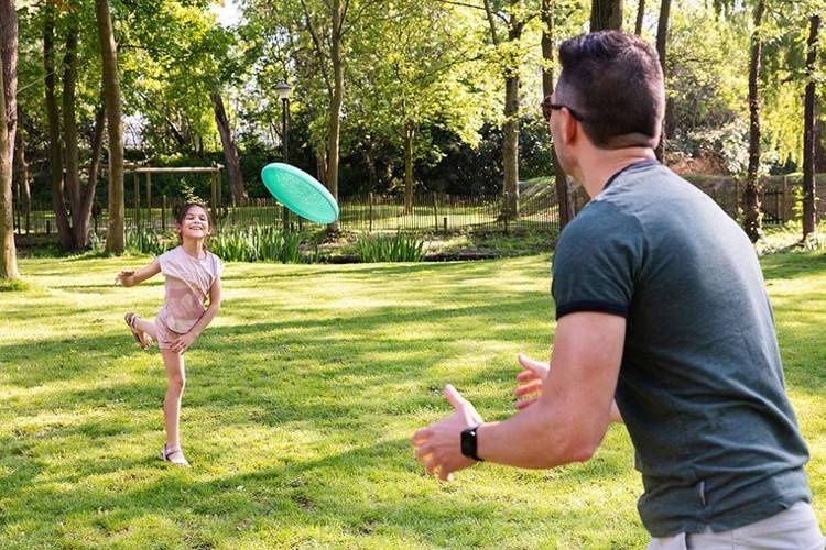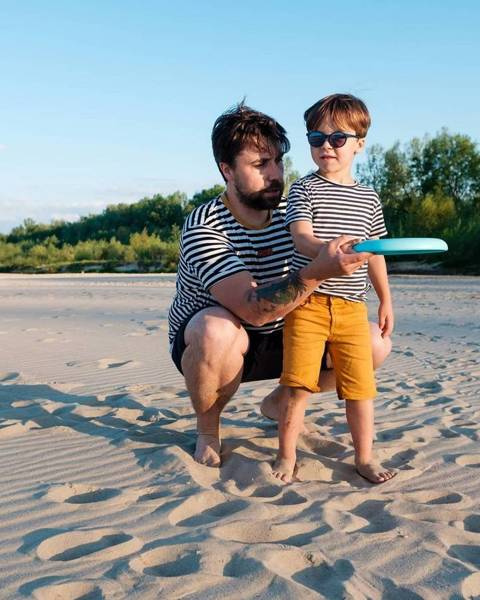Gra Latający dysk belgijskiej marki Quut to klasyczny dysk do rzucania, który jednak przyciąga wzrok niebanalnym designem i oryginalną kolorystyką. Głębszy jasnoniebieski „talerz” o zaokrąglonych, bezpiecznych brzegach ma 25 cm średnicy, jest lekki i łatwy do utrzymania nawet przez małe dziecko. Aerodynamiczna konstrukcja sprawia, że rzucony dysk bez problemu przemieszcza się w powietrzu, więc gra nim nie sprawia trudności również maluchom i osobom początkującym. Frisbee posiada ponadto szereg drobnych otworów, dzięki którym może też pełnić z powodzeniem funkcję sitka. Doskonale łączy się z innymi zabawkami marki Quut. Gwarantuje inteligentną aktywność w domu i na świeżym powietrzu, i to przez cały rok. Sprawdzą się bowiem nie tylko do zabaw w piasku (na plaży czy w piaskownicy), ale także w parku, na śniegu czy w ogrodzie.