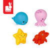 Zestaw uroczych zwierzątek morskich francuskiej marki JANOD to 4 wytrzymałe zabawki z wodoodpornego tworzywa. W skład kompletu wchodzą: wieloryb, ośmiornica, krab i rozgwiazda. Wszystkie są poręczne i przyjemne w dotyku. Ściśnięte pod wodą, napełniają się, a po ich ponownym naciśnięciu, tryskają wodą. Mają intensywne, ładne kolory. Tworzenie opowieści o ich przygodach to doskonały sposób na wyciszenie i idealny umilacz czasu, spędzanego w wannie. Zabawkę zaprojektowano we Francji. Zapakowane jest w estetyczne pudełko z uchwytem. Idealnie nadaje się na prezent.