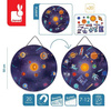 Magnetyczna układanka Układ słoneczny francuskiej marki JANOD to doskonała zabawka, rozwijająca kreatywność i wyobraźnię. Zabawa polega na układaniu magnesów na dużej okrągłej drewnianej planszy, przedstawiającej przestrzeń kosmiczną wraz z orbitami wokół Słońca. W skład zestawu wchodzi 20 magnesów, m.in. planet, pojazdów kosmicznych, komet, gwiazd i astronautów w kombinezonach. Układanka ta będzie służyć dziecku przez bardzo długi czas i nieprędko się znudzi, bo daje wiele możliwości kreowania wszechświata. Plansza ma sznurek do powieszenia jej np. w dziecięcym pokoju, którego będzie wspaniałą ozdobą. Dołączony jest do niej okrągły plakat z nazwami i krótką charakterystyką planet, na którym można się wzorować przy układaniu magnesów. Zabawka jest pięknie wykonana, co dodatkowo rozbudza zmysł artystyczny, a ponadto ćwiczy logiczne myślenie oraz sprawność manualną. To także świetny sposób na naukę astrologii.