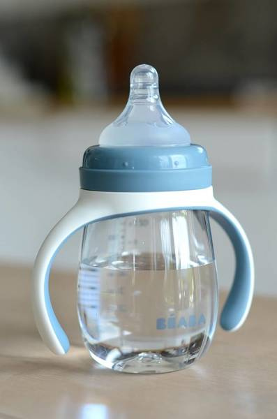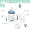 Pojemna, poręczna i lekka butelka treningowa 2 w 1 francuskiej marki BEABA wykonana została z tritanu – nowoczesnego tworzywa BPA free. Ma ergonomiczny kształt, wygodny dla dziecięcych rączek oraz dodatkowy zdejmowany uchwyt z dwoma uchami, które ułatwiają malcowi samodzielne trzymanie butelki. W komplecie znajduje się silikonowy smoczek-niekapek (płyn wydostaje się z niego wyłącznie podczas ssania) do używania już od 4. miesiąca życia, oraz ustnik-niekapek dla starszych dzieci. Każda z końcówek ma własną nakrętkę dla jej wygodnego i bardziej higienicznego wymieniania. W zestawie jest również bezpieczne i szczelne transparentne wieczko. Na ściance butelki znajduje się skala pojemności, dzięki której można podać maluchowi odpowiednią ilość płynu lub sprawdzić, ile dziecko wypiło. To idealna butelka do nauki samodzielnego picia.