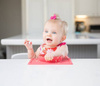 Innowacyjna silikonowa podkładka mocno przywiera do stołu czy innej gładkiej powierzchni, na której ją położysz, dzięki czemu małe dziecko (prawie na pewno) nie będzie w stanie jej przesunąć czy zrzucić. Jest dość wysoka – 3 cm – i sprawia, że malec może się z łatwością uczyć samodzielnego jedzenia zup, kaszek czy innych płynnych posiłków. Mata pasuje do większości tac na wysokie krzesełka, w tym do modeli oszczędzających przestrzeń. Nadaje się do serwowania zarówno zimnych, jak i ciepłych potraw.