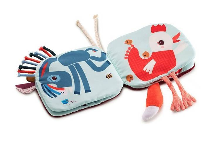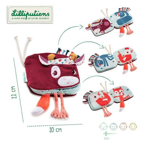 Książeczka aktywizująca „Kto się kryje za Rosalie?” belgijskiej marki Lilliputiens to idealna pierwsza lektura dla maluszka. Na jej okładce znajduje się Krówka Rosalie z - wystającymi poza stronę - rogami i uszami. Na kolejnych stronach lektury ukryły się inne zwierzęta – mieszkańcy farmy, bohaterowie marki Lilliputiens, których można spróbować rozpoznać po elementach o różnym kształcie i fakturze, wystających poza powierzchnię stron. I tak: grzywa ze sznurków zdradza Osiołka Ignace'a, długie różowe nóżki – kokoszkę Paulette, a rudy aksamitny ogon – Lisiczkę Alice. Każda z postaci ma swoją „kartkę”, czyli aż dwie strony, w książeczce. Zabawkę można zawiesić przy wózku lub szczebelkach łóżeczka, dzięki dodatkowym sznureczkom. Książeczka jest mięciutka, perfekcyjnie wykończona, z dbałością o każdy szczegół i w pełni bezpieczna dla dziecka. Pobudza dziecięcą wyobraźnię i ciekawość, aktywizuje zmysły wzroku, dotyku i sferę uczuciową. Jest także świetnym sposobem na zaszczepienie w maluszku miłości do książek.