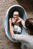 Wanienkę można stosować zarówno samodzielnie, jako wolnostojącą, jak również mocować ją na stojaku z tej linii. Zamontowana na stojaku wanienka pozostaje całkowicie stabilna, zapewnia też komfortową pozycję do kąpania dziecka, bez konieczności pochylania się.