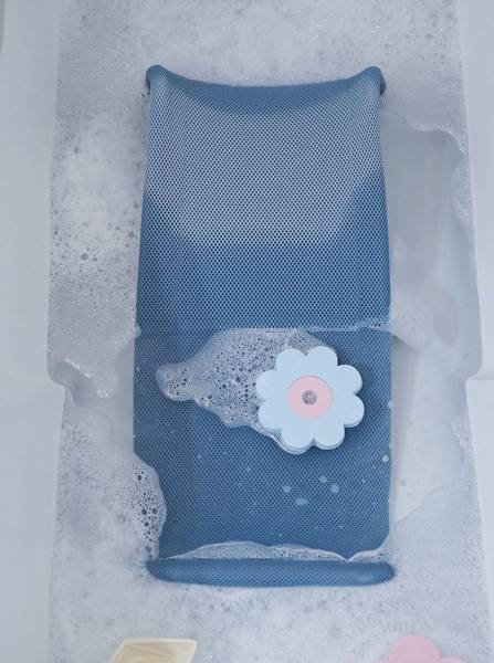 Innowacyjna wkładka - leżaczek do kąpieli niemowląt, francuskiej marki BEABA. Do stosowania od pierwszych dni życia maluszka. Utrzymana w łagodnej szaro-niebieskiej kolorystyce. Pochylona pozycja odpowiada potrzebom niemowląt – zapewnia wygodę, swobodę ruchów i bezpieczeństwo podczas kąpieli. Leżaczek jest bardzo stabilny, pokryty materiałem MESH, który idealnie dopasowuje się do ciała dziecka, gwarantując mu maksymalny komfort, bez uwierania. Dodatkowo, schnie bardzo szybko, co ułatwia zachowanie higieny. Po włożeniu do wanny, tkanina natychmiast przybiera temperaturę wody, nie jest zatem zimna w kontakcie ze skórą. Pokrowiec jest zdejmowany, nadaje się do prania w pralce w 30°C.