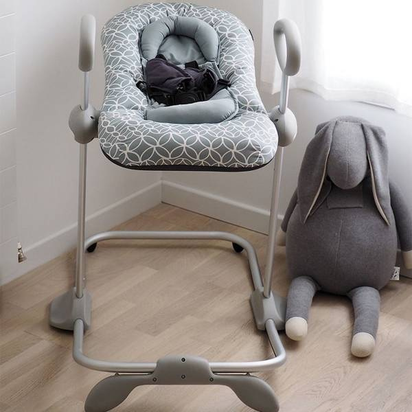 Stylowy i funkcjonalny leżaczek na stelażu z serii Up&Down francuskiej marki BEABA jest przeznaczony dla dzieci od urodzenia do 6. miesiąca życia. Dzięki niemu, dziecko od pierwszych dni może brać aktywny udział w życiu rodzinnym, a jego ciekawość świata jest stymulowana przez możliwość obserwowania otoczenia. 4-stopniowa regulacja wysokości pozwoli być blisko maluszka czy to przy stole w jadalni, czy podczas siedzenia na kanapie, czy też zabaw na podłodze. Za pomocą kliknięcia, bez problemu można ustawić siedzisko na pożądanej wysokości: 24, 38, 50 lub 62 cm od powierzchni podłogi. Jedną ręką można również wyregulować oparcie leżaczka w jednej z 3 pozycji po wyboru: do spania, półleżenia lub półsiedzenia. Miękki, piankowy materac, którym wypełnione jest siedzisko, został wyprofilowany tak, aby zapewnić małym pleckom pełen komfort i najlepszą pozycję do odpoczynku i pierwszych aktywności. Specjalnie zaprojektowana anatomiczna wkładka gwarantuje optymalne podparcie główki noworodka, a zintegrowany zagłówek zapewnia dodatkowe wsparcie, zapewnia również odpowiednie ułożenie bioder i okolic brzuszka, a tym samym prawidłowe funkcjonowanie układu pokarmowego. Możliwość regulacji wysokości to bardzo dobry sposób na odciążenie rodzicielskich pleców. Leżaczek posiada system kołysania z blokadą bezpieczeństwa i praktyczne uchwyty pod obu stronach siedziska, które pozwalają na łatwe przenoszenie mebelka (bez dziecka w środku!), bądź mocowanie aktywizujących zabawek czy uspokajających pozytywek.