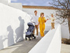 Model Jackey to lekki (7,5 kg) i kompaktowy wózek, składający się automatycznie do prostego pakunku o rozmiarach bagażu podręcznego. Po złożeniu stoi samodzielnie, co ułatwia jego przechowywanie i użytkowanie, np. podczas korzystania z miejskich atrakcji, a także transport, zarówno w bagażniku samochodu czy samolotowym schowku. Solidna automatyczna blokada pozwala łatwo go przenosić, używając pałąka jako uchwytu lub korzystając z dołączonej torby transportowej z wygodnym paskiem do przewieszenia przez ramię.
