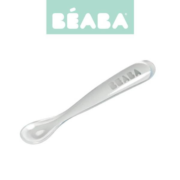 Ergonomiczna pierwsza łyżeczka dziecka francuskiej marki BEABA. Łyżeczka w jasnoszarym kolorze z transparentnymi brzegami. Miękka końcówka wykonana została z ultra elastycznego silikonu, w pełni bezpiecznego dla delikatnych dziąseł maluszka. Jej kształt został zaprojektowany tak, by ułatwiał malcowi przejście ze smoczka na łyżkę. Długi uchwyt sprawia, że łyżeczka jest bardzo wygodna do trzymania przez osobę dorosłą podczas karmienia dziecka, nadaje się również do podawania pokarmów ze słoiczka. Łyżka łatwo się czyści, można ją myć ręcznie lub w zmywarce.