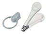 Ergonomiczne cążki do dziecięcych paznokci francuskiej marki BEABA. Delikatne i poręczne. Szersza, zaokrąglona, antypoślizgowa końcówka zapewnia stabilność chwytu i precyzję ruchów. Ich ostrza zostały wykonane ze stali nierdzewnej i można je dezynfekować w alkoholu. Cążki są bezpieczne, mają zaokrąglone końcówki i etui na ostrza, z praktycznym uchwytem do zawieszania w łazience lub zamocowania w kosmetyczce maluszka.