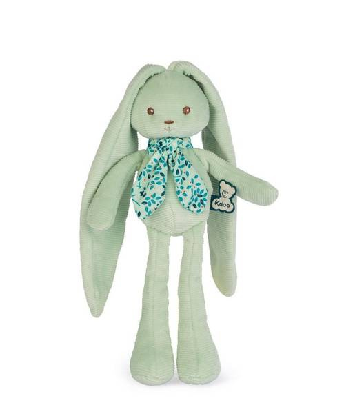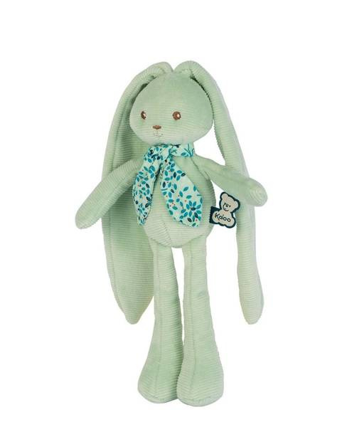 Urocza przytulanka Królik francuskiej marki KALOO to idealna zabawka dla Twojego dziecka, bezpieczna już od pierwszych dni życia. Jest niezwykle miękka, piękna i perfekcyjnie wykończona. Poręcznych rozmiarów wyjątkowo przyjemny w dotyku królik w pastelowym zielonym kolorze ma długie nogi i bardzo długie uszy, za które można go przywiązać do pałąka w wózku lub szczebelków łóżeczka, a pod szyją – zawiązaną na supeł chusteczkę ze wzorem w drobne listki. Będzie świetnym kompanem maluszka – do tulenia, usypiania, uspokajania, zabierania na spacery i wyprawy. Ma haftowane oczy i buzię.