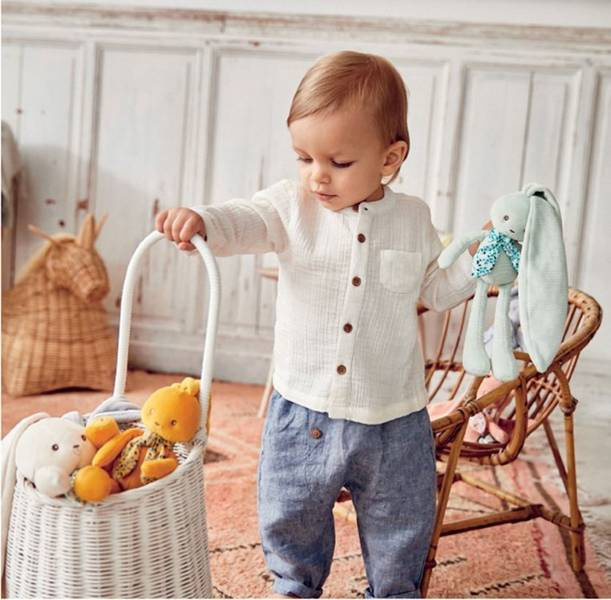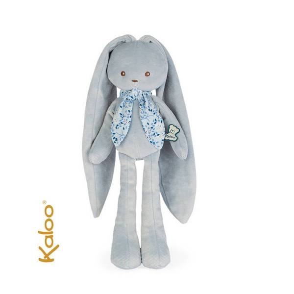 Urocza przytulanka Królik francuskiej marki KALOO to idealna zabawka dla Twojego dziecka, bezpieczna już od pierwszych dni życia. Jest niezwykle miękka, piękna i perfekcyjnie wykończona. Sporych rozmiarów wyjątkowo przyjemny w dotyku królik w kolorze bladoniebieskim ma długie nogi i bardzo długie uszy, za które można go przywiązać do pałąka w wózku lub szczebelków łóżeczka, a pod szyją – zawiązaną na supeł chusteczkę ze wzorem w drobne listki. Będzie świetnym kompanem maluszka – do tulenia, usypiania, uspokajania, zabierania na spacery i wyprawy. Ma haftowane oczy i buzię.