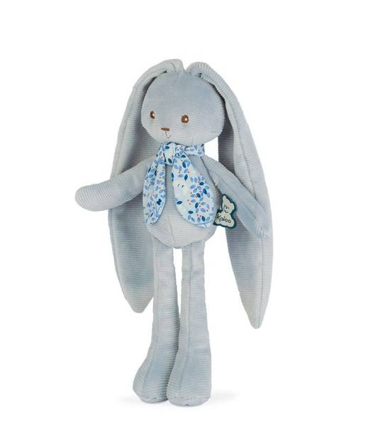Urocza przytulanka Królik francuskiej marki KALOO to idealna zabawka dla Twojego dziecka, bezpieczna już od pierwszych dni życia. Jest niezwykle miękka, piękna i perfekcyjnie wykończona. Poręcznych rozmiarów wyjątkowo przyjemny w dotyku królik w kolorze bladoniebieskim ma długie nogi i bardzo długie uszy, za które można go przywiązać do pałąka w wózku lub szczebelków łóżeczka, a pod szyją – zawiązaną na supeł chusteczkę ze wzorem w drobne listki. Będzie świetnym kompanem maluszka – do tulenia, usypiania, uspokajania, zabierania na spacery i wyprawy. Ma haftowane oczy i buzię.