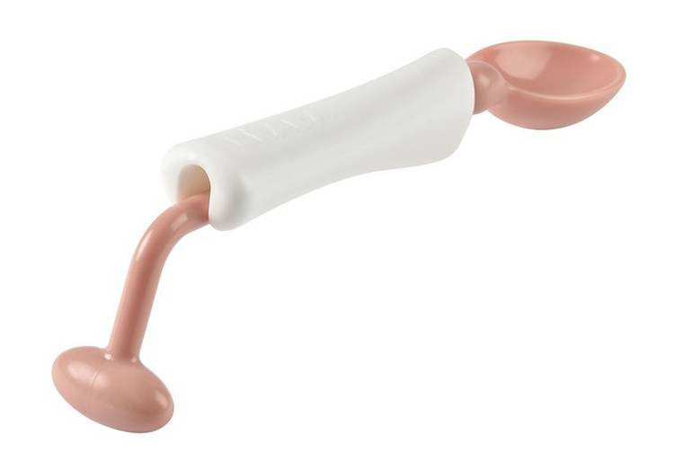 Ergonomiczna łyżeczka treningowa 360° francuskiej marki BEABA ułatwia naukę samodzielnego jedzenia. Jej główka obraca się, a dzięki odważnikowi na końcu, pozostaje zawsze we właściwej pozycji, dzięki czemu nic się z niej nie wylewa, nawet jeśli dziecko nie potrafi jeszcze trzymać prawidłowo sztućców. Na kolejnym etapie nauki jedzenia, obrotowy uchwyt można zablokować tak, aby spełniała funkcję normalnej łyżeczki. Łyżeczka jest na tyle głęboka, że nadaje się do jedzenia gęstych płynów, zup czy puree. Wykonana z najwyższej jakości materiału, wolnego od BPA. Jej elementy można rozdzielić, co sprawia, że łatwo ją wyczyścić.