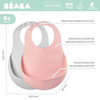 Zestaw dwóch silikonowych śliniaków z kieszonką francuskiej marki BEABA – jeden w kolorze jasnoszarym, drugi – pudrowo-różowym. Śliniaki są giętkie, lekkie i wykonane z bezpiecznego, hipoalergicznego i odpornego na zniszczenia silikonu. U dołu, na całej szerokości, zakończone są wyprofilowaną kieszonką na spadające jedzenie. Wygodne zapięcie na silikonowe „guziczki” ma regulowaną szerokość, dzięki czemu nie uwiera i nie krępuje ruchów dziecka, a przy tym utrzymuje śliniak we właściwym miejscu. Swobodzie ruchów służą także wyprofilowane boki śliniaka. Produkt ma wyjątkowo estetyczny design, jest łatwy w czyszczeniu, np. wilgotną gąbką, nadaje się również do mycia w zmywarce.