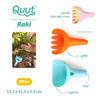 Zestaw łopatka + grabki Raki belgijskiej marki Quut przyciąga wzrok niebanalnym designem i oryginalną kolorystyką. Składa się z 2 poręcznych, lekkich i łatwych do utrzymania przez dziecko narzędzi. Są one idealne do zabawy w piasku, czy pierwszych prac w ogrodzie, ale nie tylko. Łopatka może pełnić też np. rolę lejka do wody. Zabawkami można się bawić osobno lub złożyć je w jedną całość dla wygodniejszego przechowywania i przenoszenia zestawu. Gwarantują inteligentną aktywność na świeżym powietrzu, i to przez cały rok. Sprawdzą się bowiem nie tylko do zabaw w piasku (w tym w piaskownicy), ale także w wodzie, śniegu czy ogrodzie.