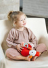 Przytulanka aktywizująca z kolekcji Kokoszka Paulette belgijskiej marki Lilliputiens to niebanalne, miękkie i wielofunkcyjne źródło rozrywki i nauki dla ciekawskich maluszków. Ma postać kokoszki o imieniu Paulette z imponującym czerwonym grzebieniem i kolorowym ogonem, które szeleszczą przy pocieraniu. W sporym czerwonym brzuszku kryje się grzechotka, a skrzydła są uchwytami, z których dodatkowo jedno to silikonowy fakturowany gryzak, a kolejne – obszyte materiałem, giętkie, bezpieczne lusterko. Kokoszka ma też kilka małych naszywek, idealnych do chwytania i długie pasiaste nogi z trójpalczastymi stopami. Zabawka jest solidnie wykonana i w pełni bezpieczna. Zaskakuje i pobudza dziecięcą wyobraźnię. Rozwija małą motorykę (chwytanie, potrząsanie), aktywizuje zmysł słuchu (szeleści, grzechocze), wzroku (lusterko) i dotyku (różne wypustki i tkaniny), a dzięki gryzakowi – przynosi ulgę w trudnym okresie ząbkowania.