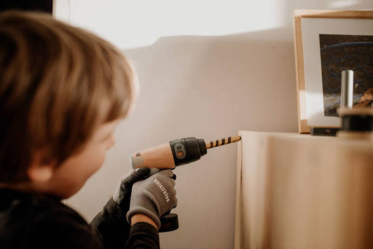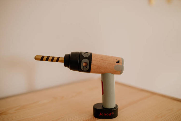 Drewniana wiertarko-wkrętarka z serii Brico'kids francuskiej marki JANOD to idealny prezent dla małego majsterkowicza. Kształtem doskonale imituje swój „dorosły” odpowiednik, posiada regulację zacisku i wymienne końcówki – wiertło oraz wkrętak (mocowane na magnes). Zabawka wspomaga rozwój zdolności manualnych dziecka, precyzję ruchów i koncentrację, stymuluje też wyobraźnię i zachęca do tworzenia historii oraz odgrywania sytuacji, znanych z obserwacji dorosłych.
