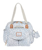Niezwykle funkcjonalna i designerska torba dla mam francuskiej marki BEABA. Bez trudu pomieścisz w niej niezbędne dziecięce akcesoria i wygodnie je posegregujesz. Torba utrzymana jest w jasnoszarej kolorystyce z białym kwiatowym wzorem, ma ciemniejsze szare suwaki i detale z karmelowej skóry, a przy tym elegancki design. To wszystko sprawia, że jest także doskonałym kobiecym dodatkiem. Bez trudu zapakujesz do niej również swoje rzeczy: telefon, długopisy czy klucze. Przy licznych przegródkach wewnętrznych znajdziesz metki, sugerujące ich zastosowanie.