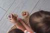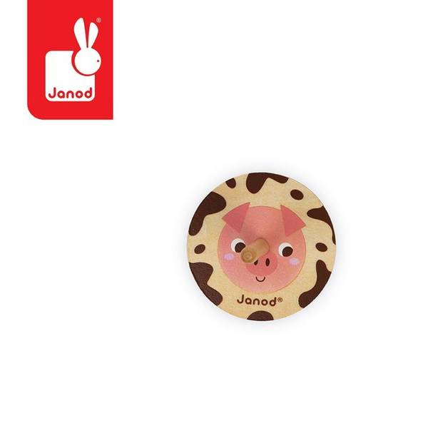 Drewniany bączek z serii zabawek do kieszonki Pocket francuskiej marki JANOD to tradycyjna zabawka, stymulująca małą motorykę, zręczność, koordynację ręka-oko i dostrzeganie związków przyczynowo-skutkowych. Zadaniem dziecka jest wprawianie drewnianego elementu w ruch przez odpowiednie ruchy ręki, trzymającej bolec, co wymaga refleksu i skupienia. Zabawka ma naturalny odcień drewna. Występuje w kilku wersjach (z grafiką małpki, świnki, królika oraz koali). Jest lekka i poręczna. Zaciekawi każdego maluszka.