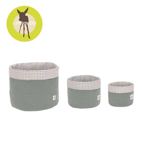 • Lassig Muślinowe kosze do przechowywania 3 sztuki Cozy Home szarozielone