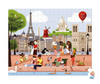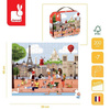 Zestaw puzzli w walizce Paryż francuskiej marki JANOD składa się z 200 elementów, po ułożeniu tworzących piękny, bogaty w szczegóły obrazek, przedstawiający ludzi na deptaku nad Sekwaną i charakterystyczne budynki Paryża w tle, m.in. wieżę Eiffela, katedrę Notre Dame czy teatr Moulin Rouge. Puzzle wykonane są z solidnego kartonu. Zaprojektowane i wyprodukowane we Francji. Zapakowane w estetyczną walizeczkę z rączką. Idealnie nadają się na prezent.