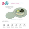 Silikonowa pokrywka amerykańskiej marki EZPZ (czyt. izipizi) ma owalny kształt i dedykowana jest do małego talerzyka Mini Mat jako praktyczne akcesorium, ułatwiające przechowywanie i przenoszenie w nim przekąsek, pokarmów oraz ich resztek. Pokrywka precyzyjnie przywiera do naczynia, co pozwala dłużej zachować świeżość, zapach i smak jedzenia, ale szczelność podczas przewożenia zapewnia wyłącznie pozycja pozioma naczynia. Posiada płaski zintegrowany uchwyt, dzięki któremu jej zdejmowanie i nakładanie jest bardzo proste i wygodne.