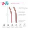 Dwie dodatkowe silikonowe słomki amerykańskiej marki EZPZ (czyt. izipizi) dedykowane są do kubeczka Mini Cup jako praktyczne akcesorium, ułatwiające korzystanie z naczynka – dzięki nim nie musisz się denerwować ewentualnym zapodzianiem się lub zgubieniem słomki, nie musisz jej też zmywać przy każdej zmianie napoju. Słomki zostały zaprojektowane przez specjalistę w dziedzinie logopedii i żywienia tak, aby ułatwić maluszkowi naukę samodzielnego picia. Ich unikalny kształt jest doskonale dopasowany do ust i potrzeb małego człowieka. Wygięcie oraz sensoryczne wypustki w górnej części aktywują automatyczne domknięcie warg i szczęki, a optymalna długość wspiera naukę oddychania przez nos i normalizacji oddechu. Kolejnym etapem, po opanowaniu umiejętności picia przez zakrzywiony koniec słomki, jest nauka picia przez prostą słomkę – do tego służy drugi koniec bez wypustek. Szeroki przepływ (średnica słomki to niemal 1 cm!) umożliwia spożywanie napojów o zróżnicowanej gęstości. Co ważne, zaokrąglanie warg podczas używania słomki sprzyja postępom w kształtowaniu się i używaniu aparatu mowy.